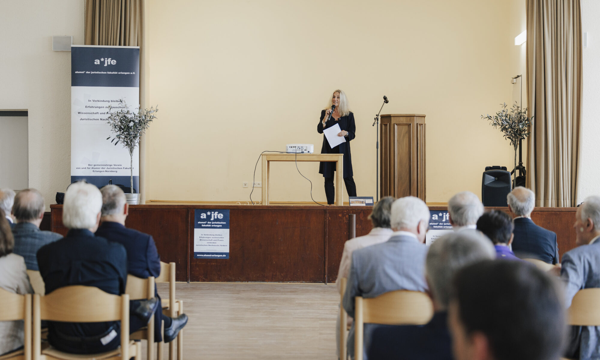 Mit einer feierlichen Festveranstaltung im Festsaal des Erlanger Studentenhauses beging der Verein a*jfe – Alumni der Juristischen Fakultät Erlangen e.V. sein 25-jähriges Jubiläum. Unter dem Motto „In Verbindung bleiben – Erfahrungen austauschen – Wissenschaft und Praxis verbinden – Juristischen Nachwuchs fördern“ kamen zahlreiche Ehemalige, aktuelle Studierende sowie Gäste aus Wissenschaft und Praxis zusammen, um auf ein Vierteljahrhundert erfolgreicher Alumniarbeit zurückzublicken – und nach vorn zu schauen.